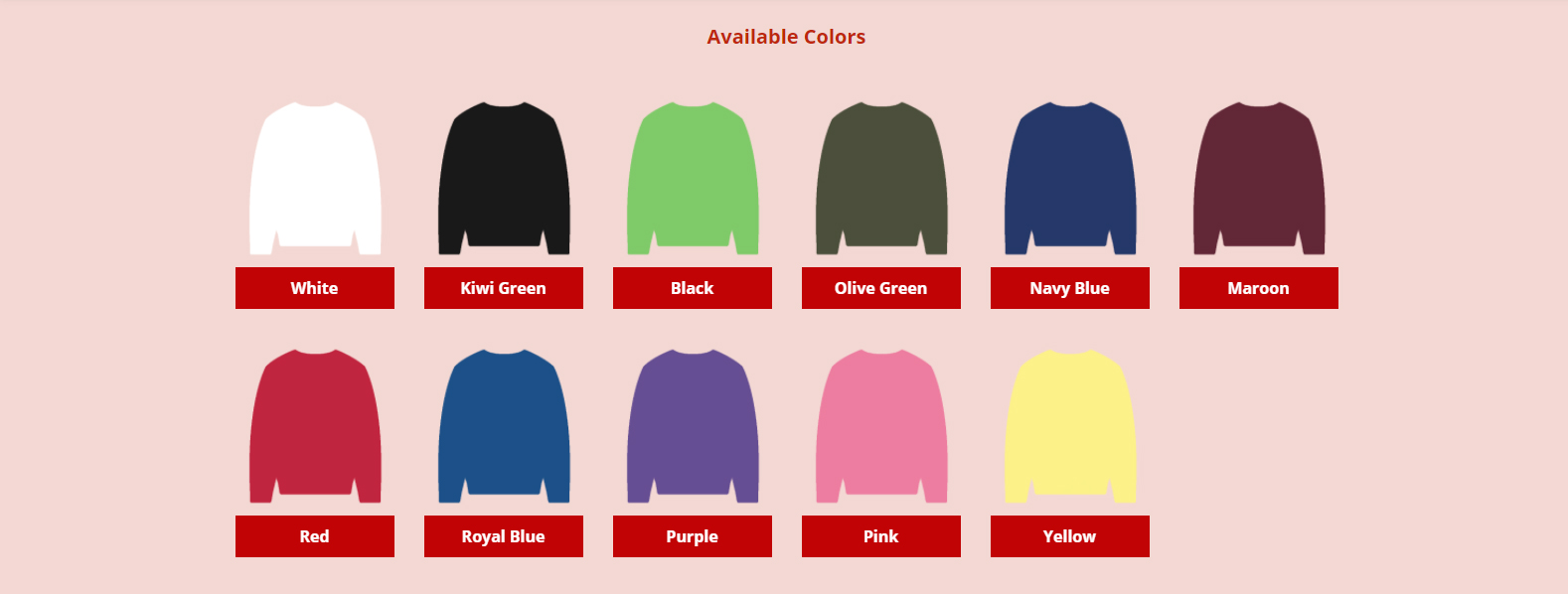Our wholesale plain sweatshirts are available in black, white, red, royal blue, navy blue, olive green and grey melange colors. Other custom colors plain bulk sweatshirts orders are taken upon the request. we wholesale bulk sweatshirts, which is high in its quality, breathable and durable.