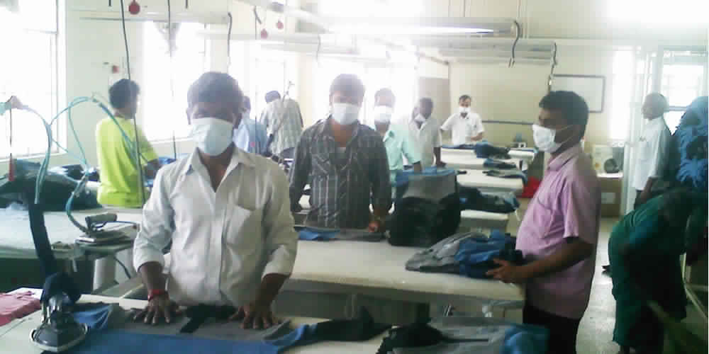 Stream ironing the finished products to pack quickly. Garments are steam processed.